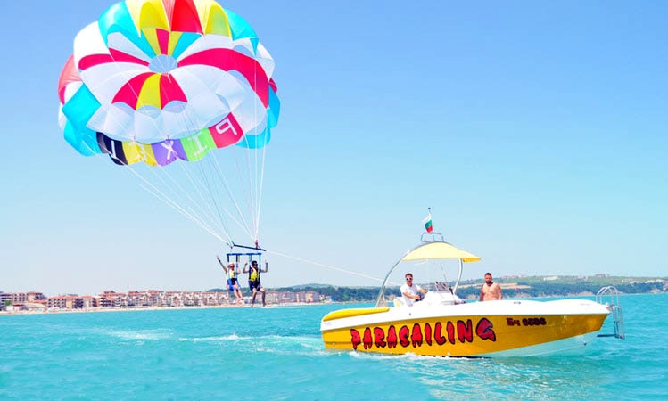 inoltre fai prima o dopo il viaggio in paracadute, puoi fare molte altre escursioni in spiaggia, abbiamo molti diversi tipi di sport come barca di vetro o banana, tubo ..